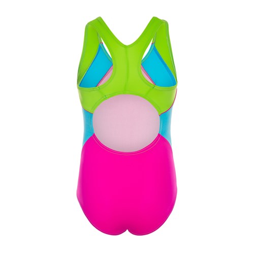 Kostium który prezentujemy, dzięki swojej oryginalnej stylistyce oraz doskonałemu krojowi bez wątpienia sprosta oczekiwaniom każdej dziewczynki. Kontrastujące wstawki, znajdujące się po bokach, urozmaicają krój.