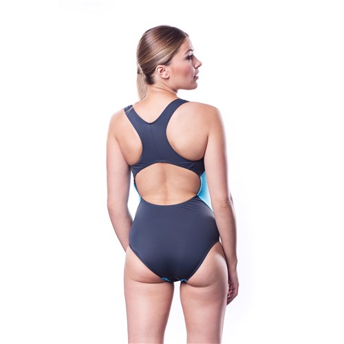 Za pełne dopasowanie stroju do ciała oraz jego właściwe ułożenie odpowiada wysoka jakość materiału, z którego został wykonany.Proponowany model posiada także niezwykle ciekawe rozwiązania - kontrastujące wstawki materiałowe, które optycznie wyszczuplają.