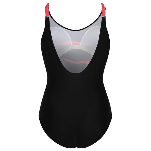 Jednoczęściowy strój kąpielowy, który prezentujemy, to gwarancja pełnej swobody ruchów oraz całkowitego dopasowania do sylwetki ciała. Siatka modelująca niweluje odstający brzuszek. Regulowane ramiączka oraz miska.