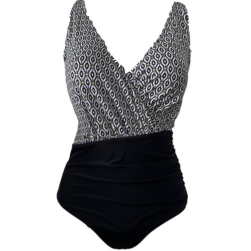 Ten jednoczęściowy kostium kąpielowy dzięki delikatnym marszczeniom doskonale modeluje sylwetkę, dyskretnie tuszując jej mankamenty. Dzięki wewnętrznemu staniczkowi z wszytymi miseczkami ładnie układa biust i dba o to aby nawet podczas ruchu ładnie się pr