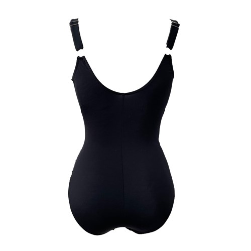 Ten jednoczęściowy kostium kąpielowy dzięki delikatnym marszczeniom doskonale modeluje sylwetkę, dyskretnie tuszując jej mankamenty. Dzięki wewnętrznemu staniczkowi z wszytymi miseczkami ładnie układa biust i dba o to aby nawet podczas ruchu ładnie się pr