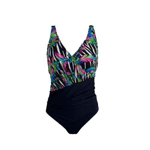 Ten jednoczęściowy kostium kąpielowy dzięki delikatnym marszczeniom doskonale modeluje sylwetkę, dyskretnie tuszując jej mankamenty. Dzięki wewnętrznemu staniczkowi z wszytymi miseczkami ładnie układa biust i dba o to aby nawet podczas ruchu ładnie się pr