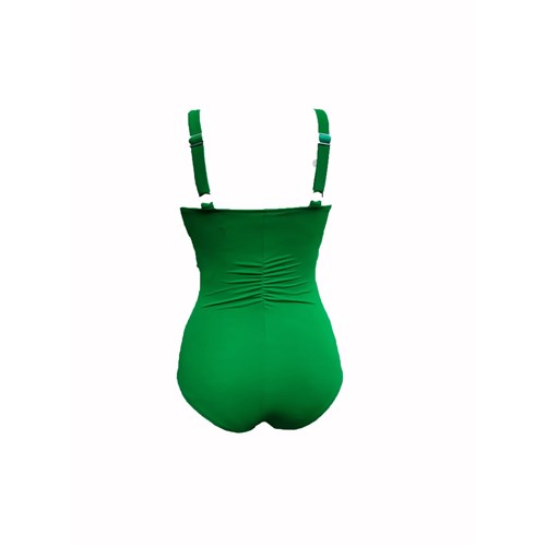 Ten jednoczęściowy kostium kąpielowy dzięki delikatnym marszczeniom doskonale modeluje sylwetkę, dyskretnie tuszując jej mankamenty. Dzięki wewnętrznemu staniczkowi z wszytymi miseczkami ładnie układa biust i dba o to aby nawet podczas ruchu ładnie się pr