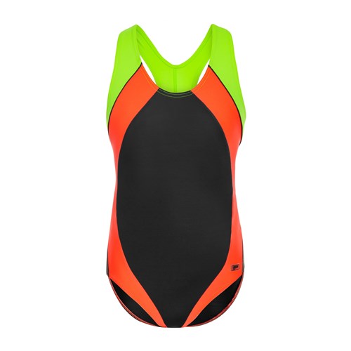 Kostium który prezentujemy, dzięki swojej oryginalnej stylistyce oraz doskonałemu krojowi bez wątpienia sprosta oczekiwaniom każdej dziewczynki. Kontrastujące wstawki, znajdujące się po bokach, urozmaicają krój.
