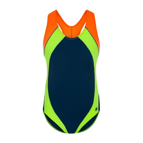 Kostium który prezentujemy, dzięki swojej oryginalnej stylistyce oraz doskonałemu krojowi bez wątpienia sprosta oczekiwaniom każdej dziewczynki. Kontrastujące wstawki, znajdujące się po bokach, urozmaicają krój.