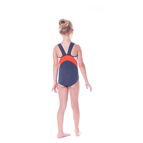 Kostium który prezentujemy, dzięki swojej oryginalnej stylistyce oraz doskonałemu krojowi bez wątpienia sprosta oczekiwaniom każdej dziewczynki. Kontrastujące wstawki, znajdujące się po bokach, urozmaicają krój.