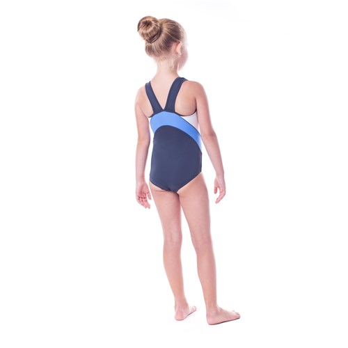 Kostium który prezentujemy, dzięki swojej oryginalnej stylistyce oraz doskonałemu krojowi bez wątpienia sprosta oczekiwaniom każdej dziewczynki. Kontrastujące wstawki, znajdujące się po bokach, urozmaicają krój.