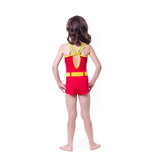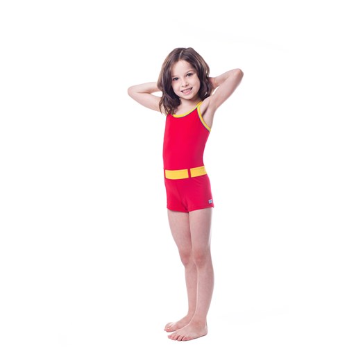 To wyjątkowy model jednoczęściowego stroju kąpielowego dla dziewczynek. Dzięki atrakcyjnym i kontrastującym wstawkom imitującym pasek, tworzy złudzenie stroju dwuczęściowego. W całości został wykonany ze starannie wyselekcjonej dzianiny.