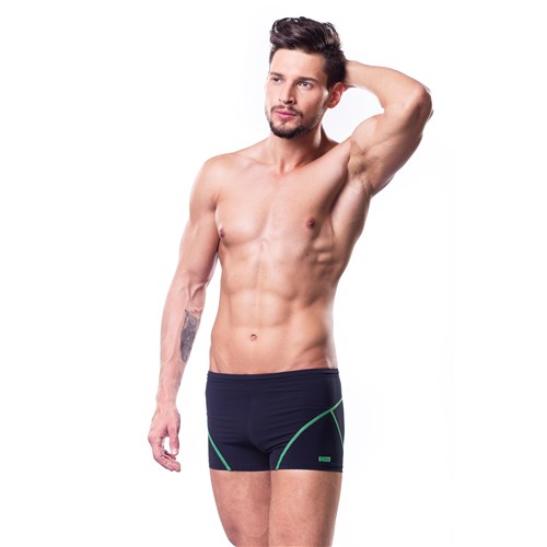 Kąpielówki wykonany został z dzianiny stanowiącej połączenie lycry oraz poliamidu. Samoczynnemu zsuwaniu się kąpielówek zapobiegnie szeroka, nieuciskająca gumka oraz wszyty na wysokości pasa sznureczek.Odporne na chlor oraz UV.